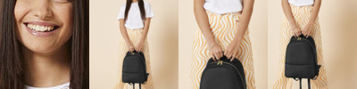 Saffiano fine grain. Zipped main compartment. Internal organisation pocket. Internal water bottle holder. Discreet zipped back panel pocket. Zipped internal valuables pocket. Soft-touch lining. High shine gold metal zips. Wheeled luggage handle strap. Self-fabric adjustable shoulder straps. Grab handle. TearAway label for ease of rebranding.