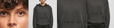 Natural fibre, knitted. Hood. Set-in sleeve. Kangaroo pocket. 1x1 rib.