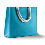 Soft dyed yarn jute bag, with cotton handles. 100% ecological, 100% biodegradable, 100% natural. BSCI certified. SEDEX certified.