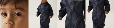 Waterproof and breathable Isolite lightweight polyester fabric. Windproof fabric. Taped seams. Integral hood. Reflective trim to front and back. Part-elasticated waist. Elasticated cuffs and hem.