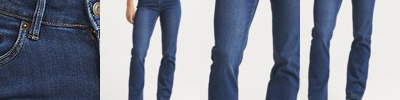 Slim fit. Stretch denim. 5 pocket styling. Light blasting & whiskering (blue washes only). Self-fabric belt loops. Shank button and YKK zip fly fastening. Metal rivet detail at pocket corners. Twin needle stitching detail.