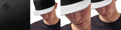 Classic shape. Premium wool blend. Matching plastic snap. Hard buckram. Metallic look visor.