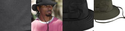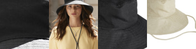 Contains 100% certified recycled nylon. Water-repellent fabric. Protection against sunlight: UPF50+. Wide-brimmed design. Adjustable chin strap. TearAway label for ease of rebranding.