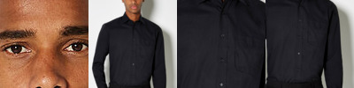 Fused collar. Chest pocket. Double folded side sleeve seams. Shirt tail bottom. Spare button. Back yoke. Wrinkle free taped seams, armholes, yoke and pocket. Size Collar (to fit) 14½", 15", 15½", 16", 16½", 17", 17½", 18", 18½"