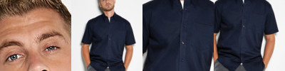 Fused semi cutaway collar. 7-button placket with self-coloured buttons. Rounded hem. back yoke. Single stitching around armholes. Double-stitched sleeves and side seams. Patch pocket with angled corners to left chest as worn. Spare button. Kustom Kit® woven back neck label.