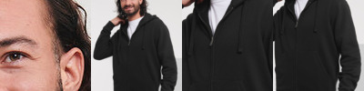 Ultra contemporary zipped hooded sweat in premium 3 layer fabric for a fuller, more substantial and luxurious hand-feel. Coverseamed armholes, cuffs and hem. overseam around hood. Herringbone neck tape. Flat, chunky drawcord. MP3 access. YKK Metal (Antique Silver) Full Zip. Kissing (covered) zip for full cross body decoration. Buttonhole eyelets. Front facing shoulder seams. Premium finishing. Part of the Russell sweatshirt family that continues to perform wash after wash.